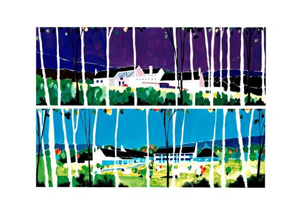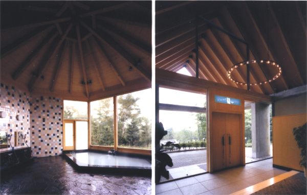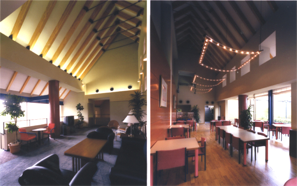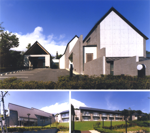 企業として那須塩原に建てた、初めての厚生施設。バックの山並み、社長の好きな北欧デザイン(教会)、CIなど、具象・抽象問わず、様々なレベルのものをパッチワーク的にアセンブリーして設計する方法はないか模索しながら計画を進めた。