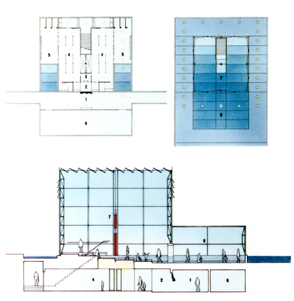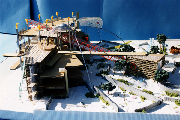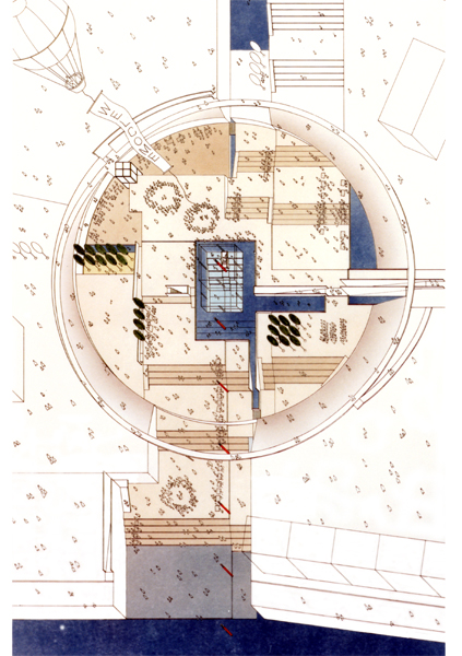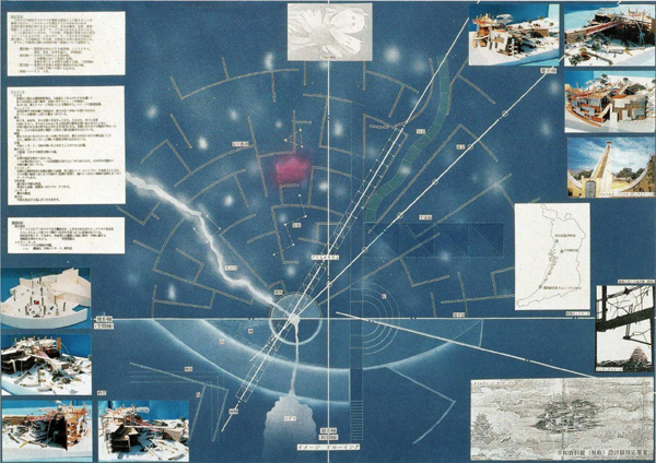 戦争被災都市・大阪のシンボル的施設として大阪城公園に建設された平和資料館(現 おおさかピースセンター)の公開設計競技佳作入賞案。〈平和〉の拠り所を広く地球・宇宙に求め、さまざまな人間の英知が結集した現代の〈曼荼羅〉を描くことで、平和をミクロコスモスの中に追求することを意図した。