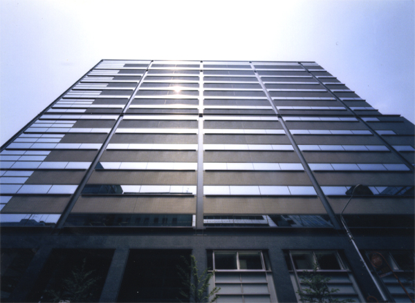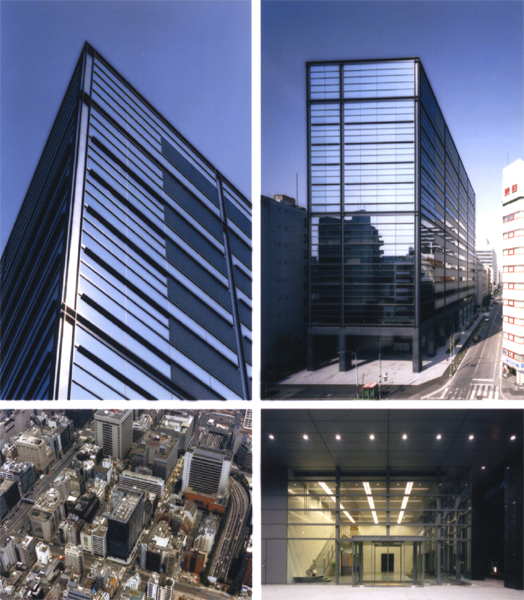 銀座・木挽町地区の地権者数社を取りまとめて出来た、高層オフィスビルの計画。特異な地権者の集まりらしく、低層に2階建ての料亭がへばりつき、地下には変電所・伝送センターなどの都市施設を抱えたビルとなっている。デザイン的には「抽象近代と江戸期の文様との協奏」をテーマとした手法を内外で展開している。