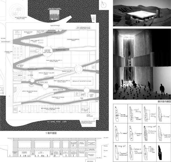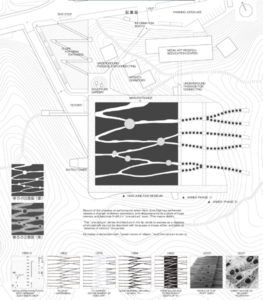 「ビデオアート」の祖といわれる世界的アーチスト、ナム・ジュン・パイクの作品展示を主とした美術館の国際設計競技応募案。