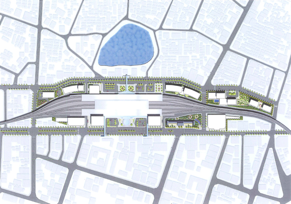 主にハノイ駅とザバット駅周辺の、ツインタワービルを含むビル群の企画設計を担当。